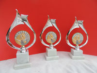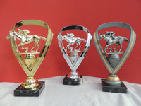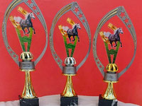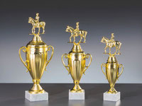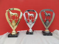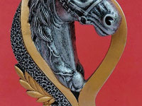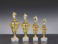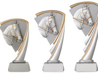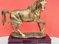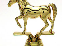 Pferdetrophäe Resin Figur Gold auf Holzsockel im M